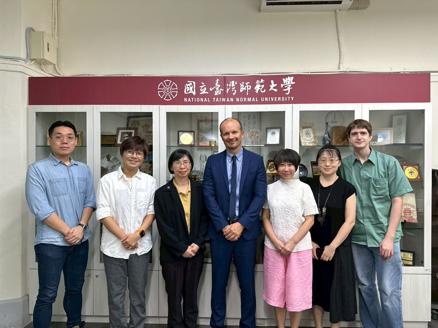 本次訪問由國際臺灣學研究中心林巾力主任與 INALCO 劉教授牽線促成。Guillerme 先生首先至臺文系賀安娟教授課堂與學生分享,隨後前往國際處會晤謝秀梅副處長、國際事務學合組林高名組長,以及歐洲文化與觀光研究所陳學毅所長,洽談雙方校級 MOU、學生交換合約,以及 ENS 派遣法語實習助教至臺師大授課的可能性。