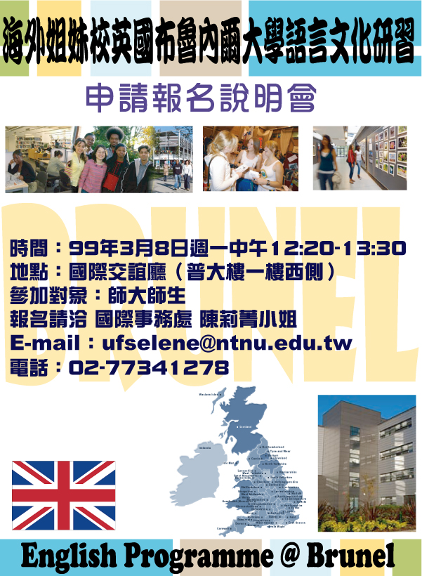 主題:「姐妹校英國布魯內爾大學暑期語言文化研習活動」申請宣傳說明會