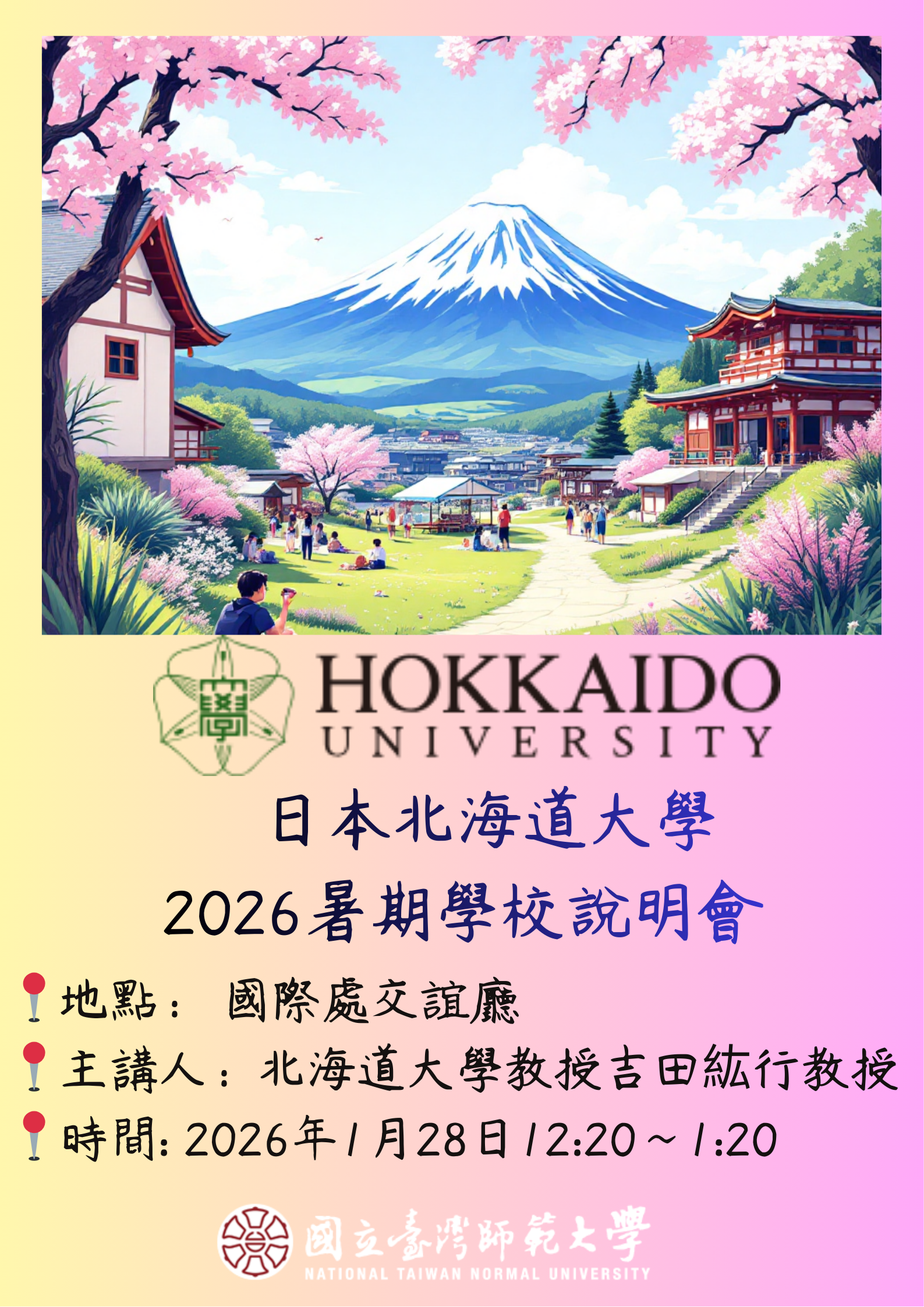日本北海道大學2026年暑期學校說明會(2026年1月28日)
