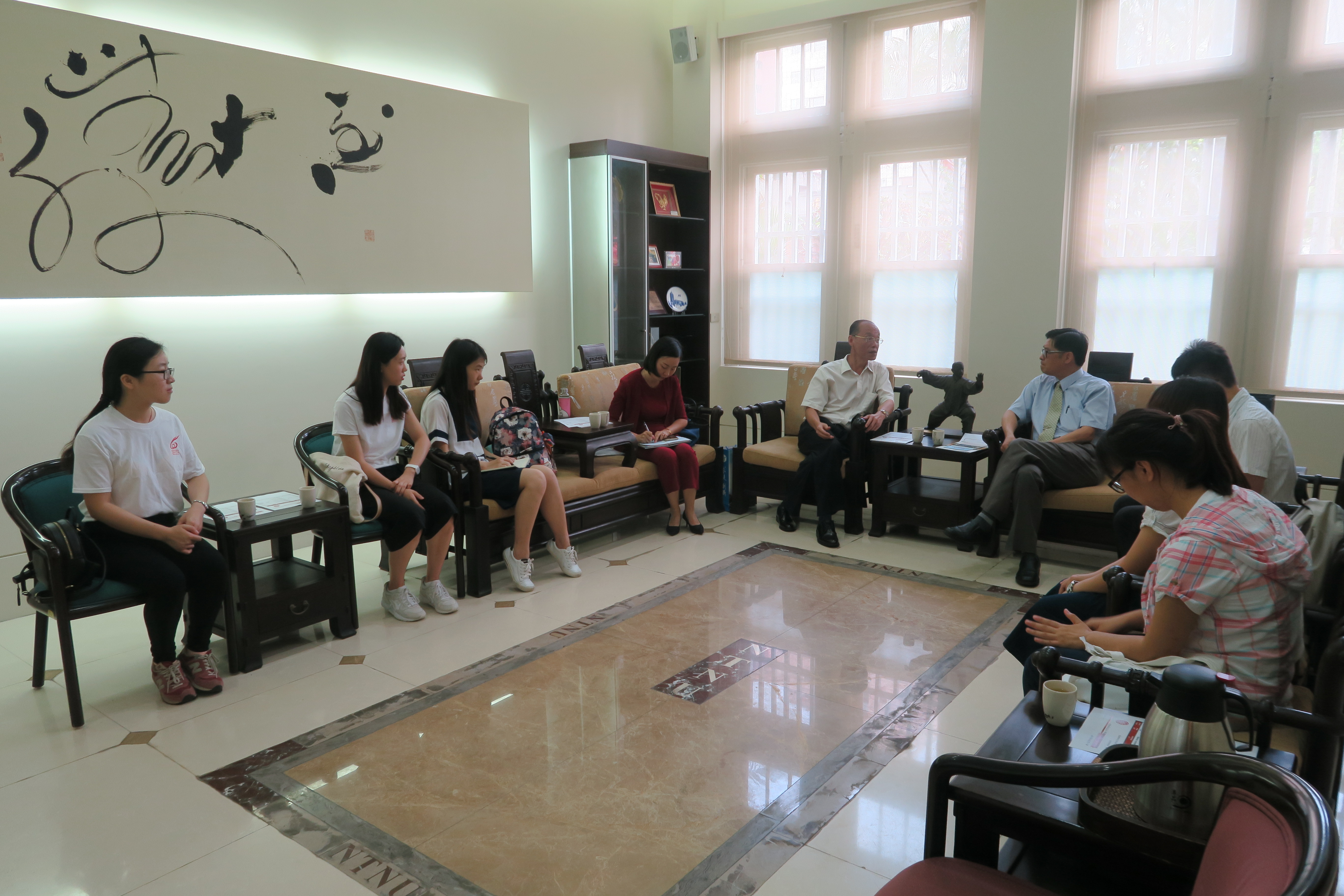 本校與海南師範大學於2006年締結為姊妹校,由來已久。本次梁處長來訪,主要是洽談兩校交流情形,探望該校在臺師大學生,了解學生在臺學習的生活情況,並盼與臺師大多多交流學習,借鑒成功的文化教育經驗。近兩年來,海南師範大學有許多同學赴本校學習,這學期就有12位同學在本校校本部及公館校區學習,海南師大的同學對課業學習十分用心,本校十分歡迎海南師大的同學前來,盼雙方學生共同切磋學習成長,對兩校的學生來說,都是十分難得的文化交流經驗。