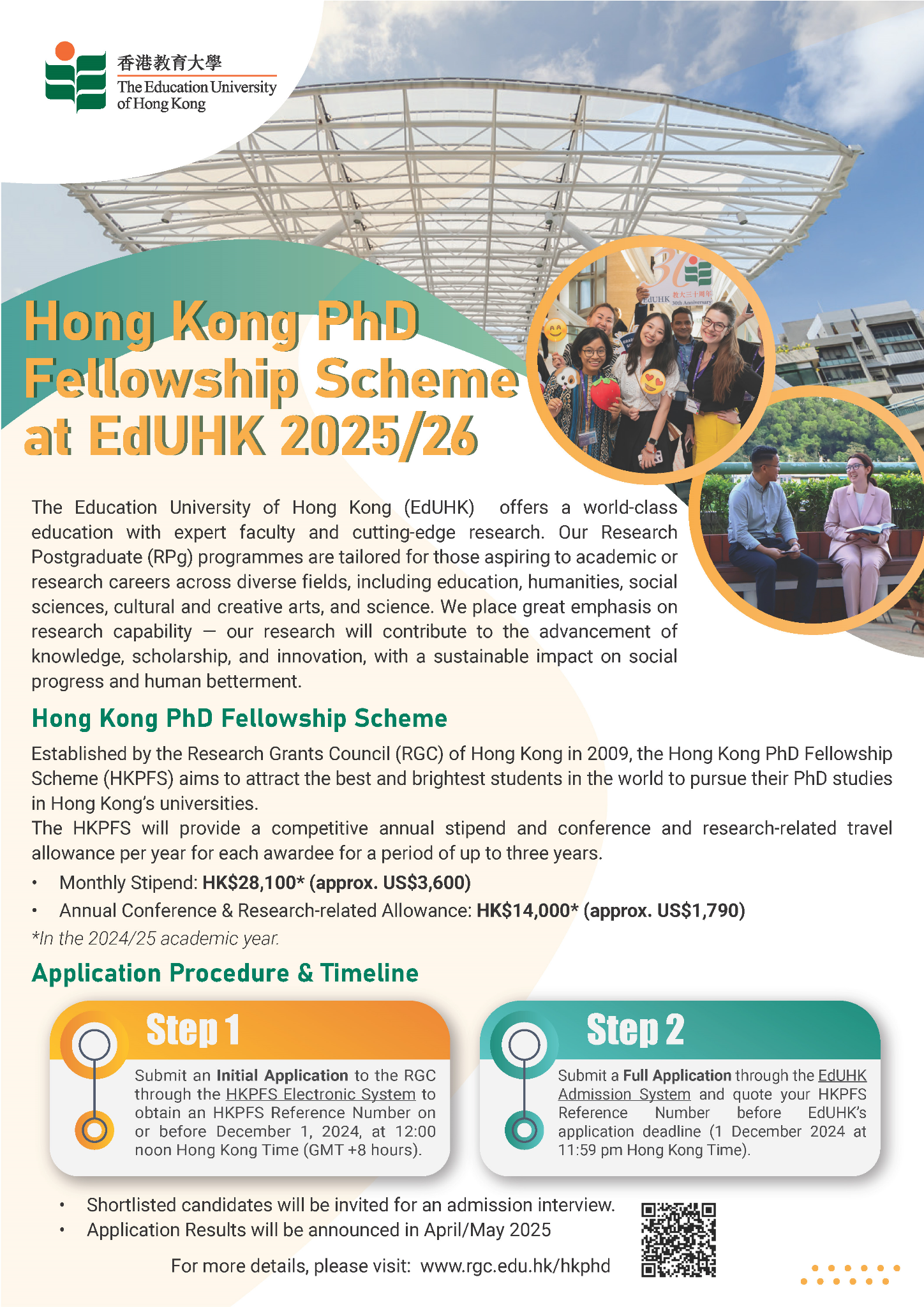 【轉知】香港教育大學-香港博士研究生獎學金計劃(HKPFS)