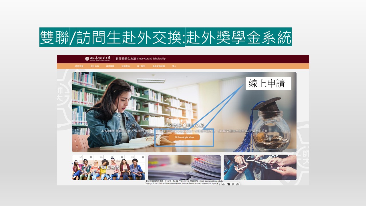Email:oiagrants@ntnu.edu.tw(赴外獎學金專用信箱)