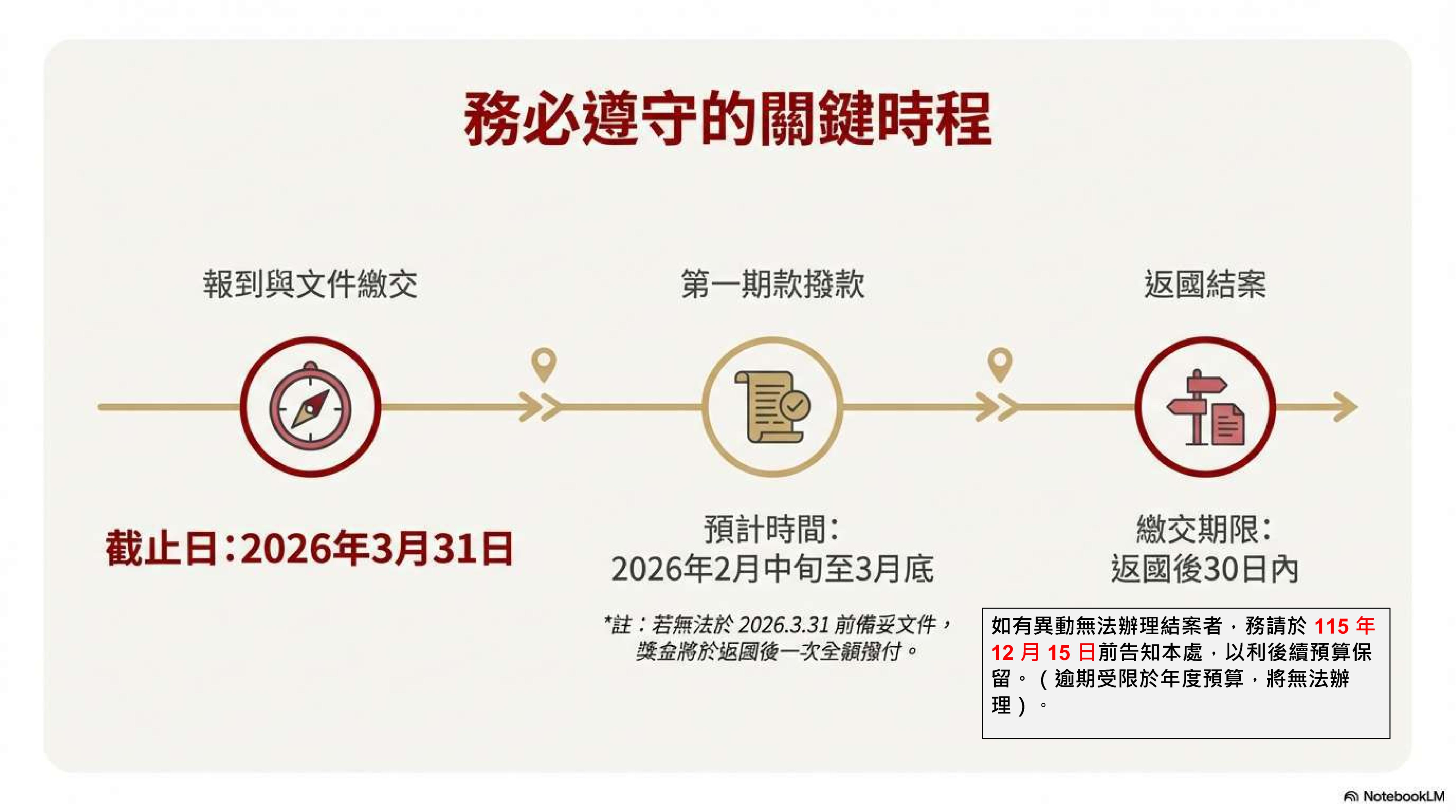 - 因年度預算之故,本款項撥付時間預計為2026年2月中旬(114-2學期開始之後)