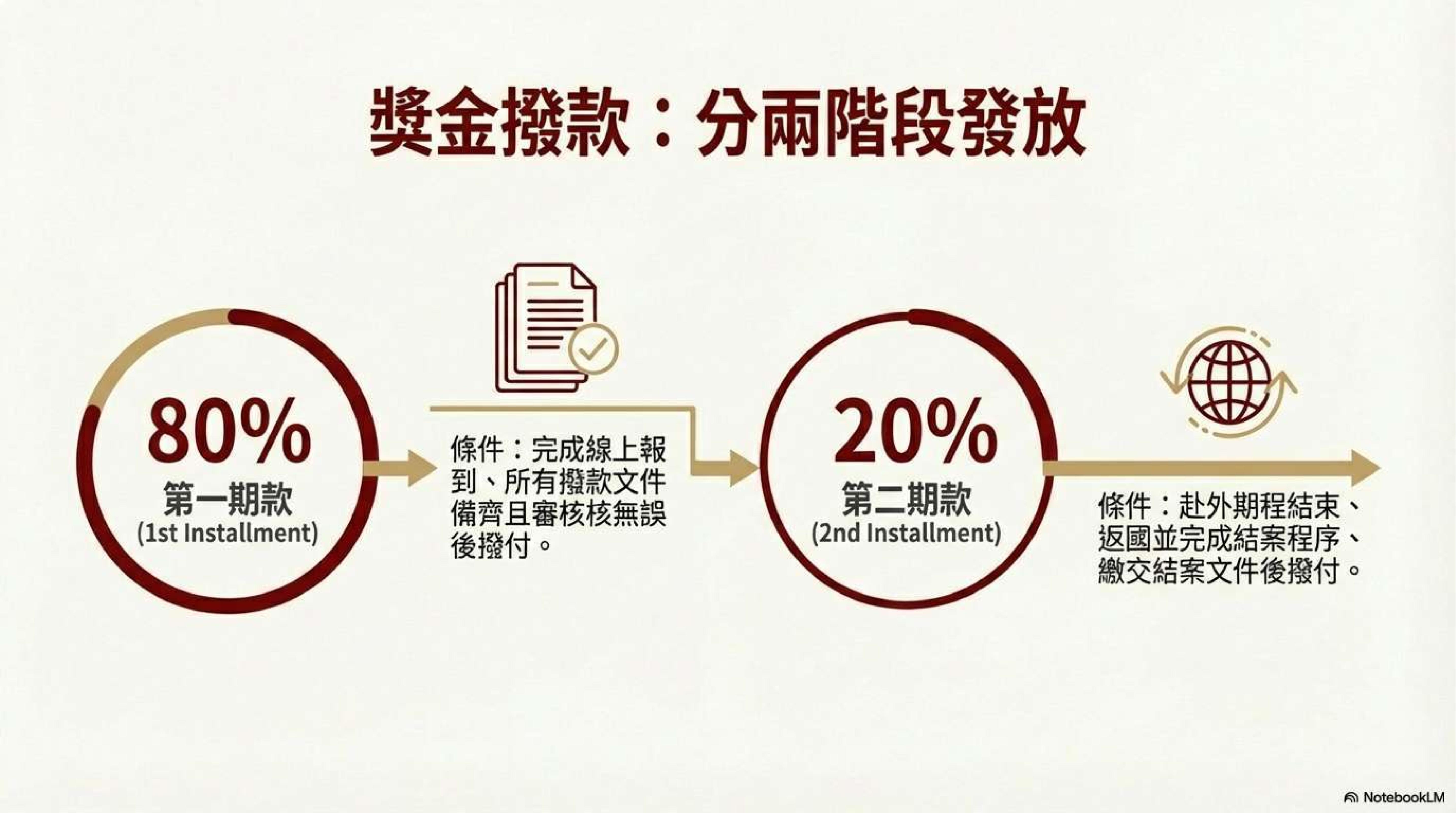 🗝️ 第二步:出國前請領第一期款(獲核總額之80%)