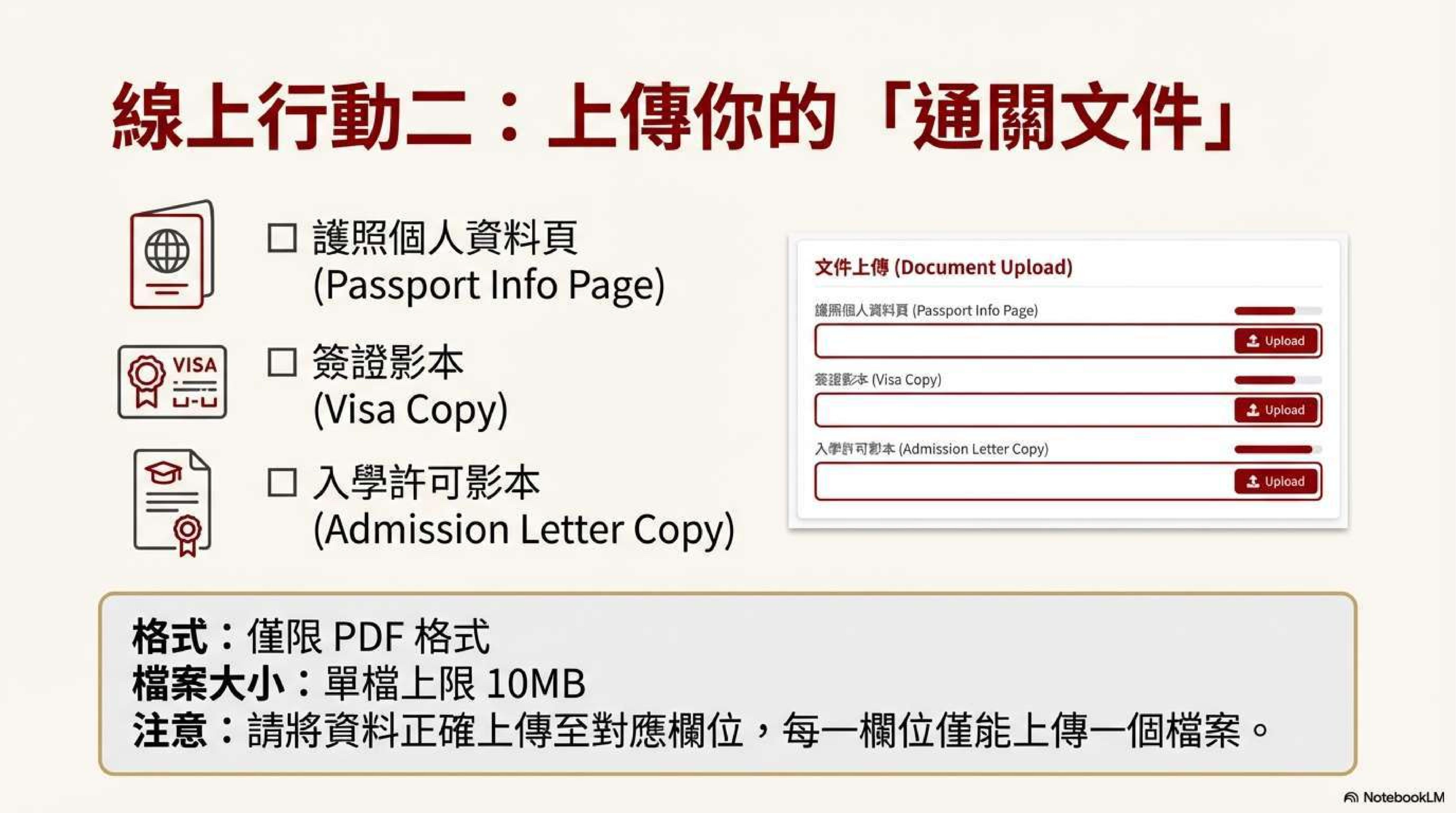 - 格式規範:僅接受 PDF 格式,單一檔案不得超過 10MB。