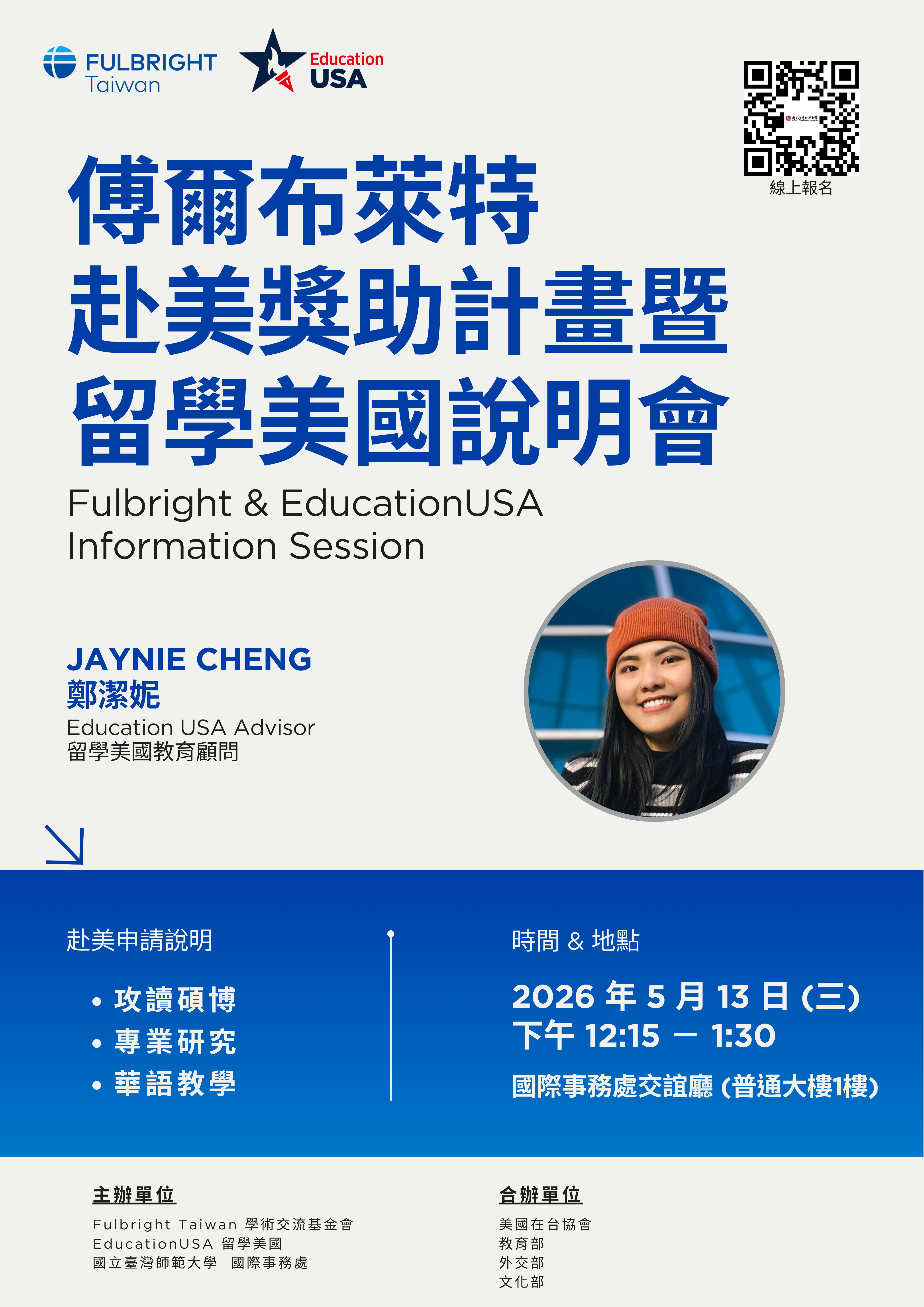 5/13(三) 傅爾布萊特(Fulbright)赴美獎助計畫曁留學美國說明會