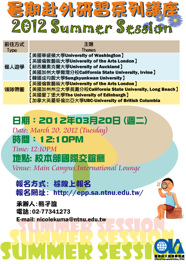 | 317 | 2012/03/07 | | 2012暑期語言文化研習課程【加州大學爾灣分校暑期大學修讀 (學分課) UCI Summer Session】 |